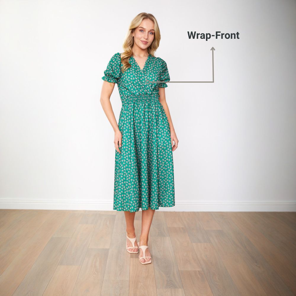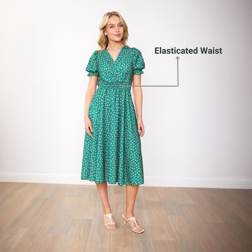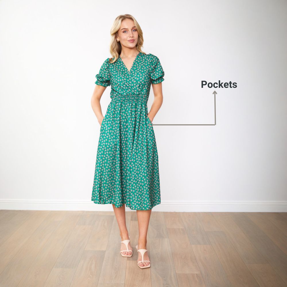 Belle Dress (Green/Pink Blossom)