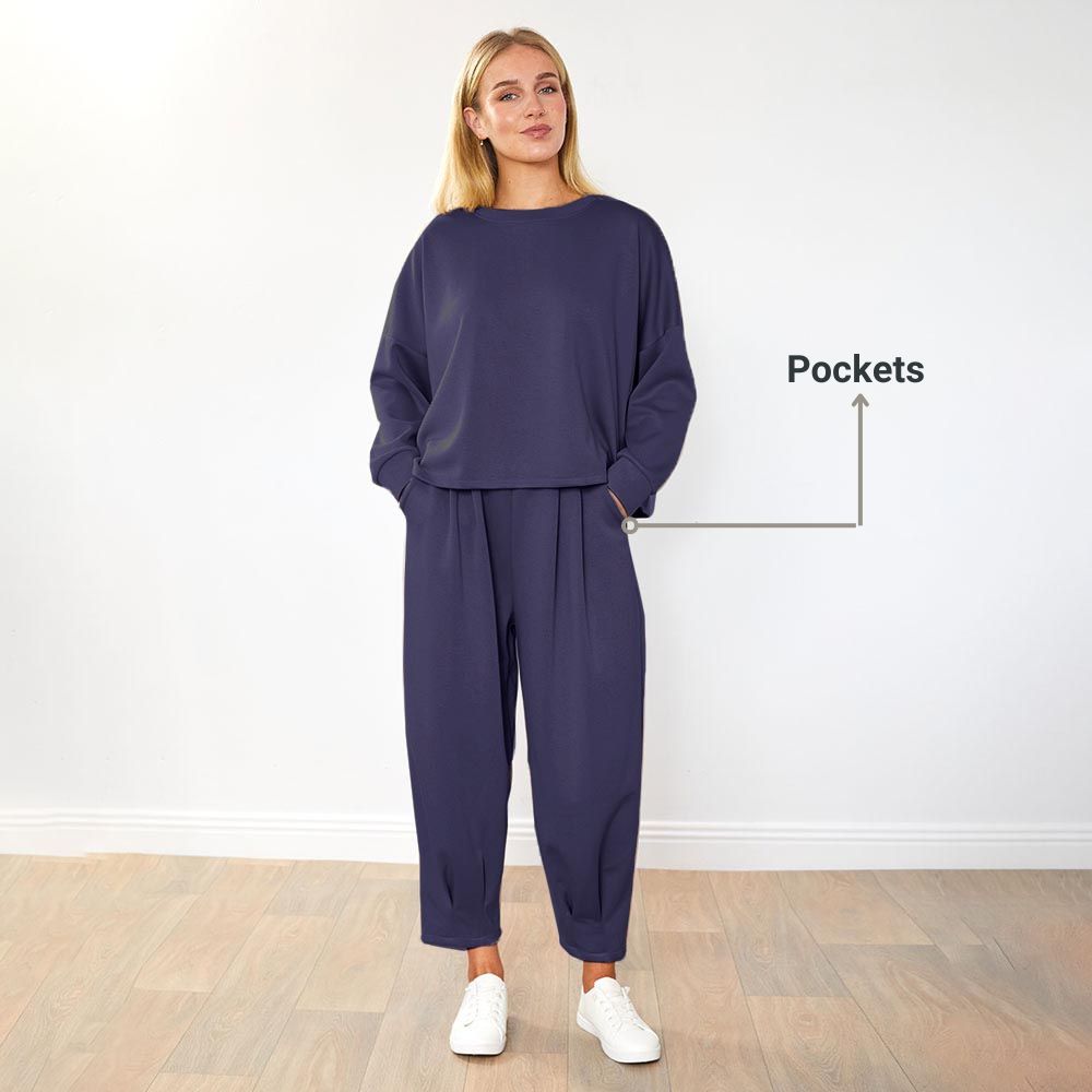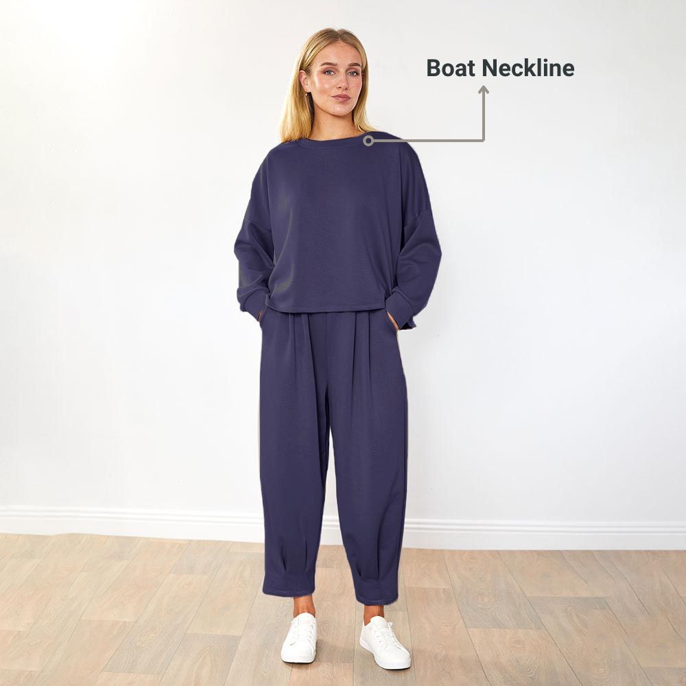 Effortless style meets all-day comfort with the Darina Co-Ord. Featuring a flattering boat neckline, relaxed fit, and elasticated waist, this set moves with you while keeping things chic. The tapered leg with soft pleating adds shape and polish, and yes — it’s got pockets too. Dress it up or keep it casual, this is your go-to for comfort that looks effortlessly put together. ✨