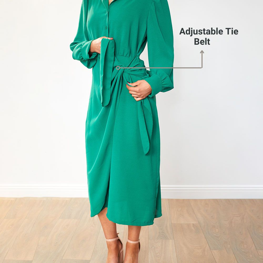 Slip into the Emerson Wrap Dress and feel instantly put-together — effortlessly chic, beautifully flattering, and designed to move with you from desk to dinner. 💚