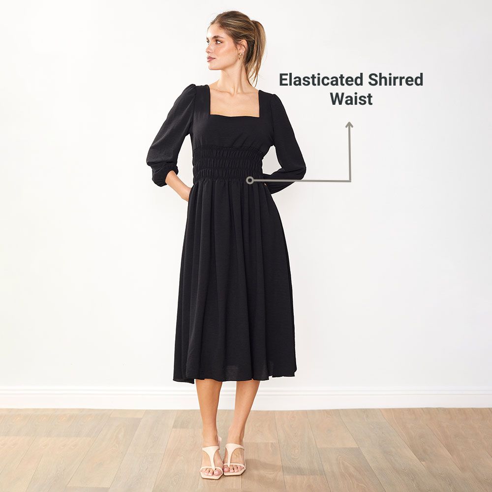 "Love this dress – so flattering and comfy, the shirred waist makes it feel amazing on."
