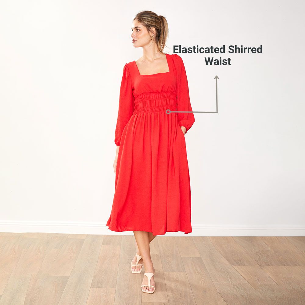 "Love this dress – so flattering and comfy, the shirred waist makes it feel amazing on."
