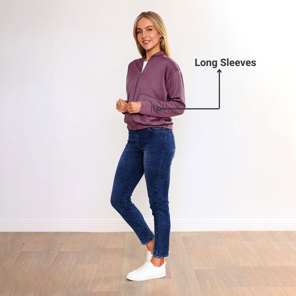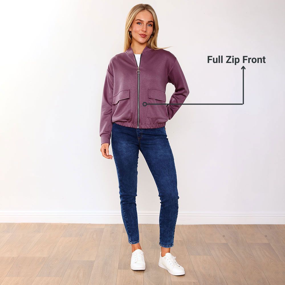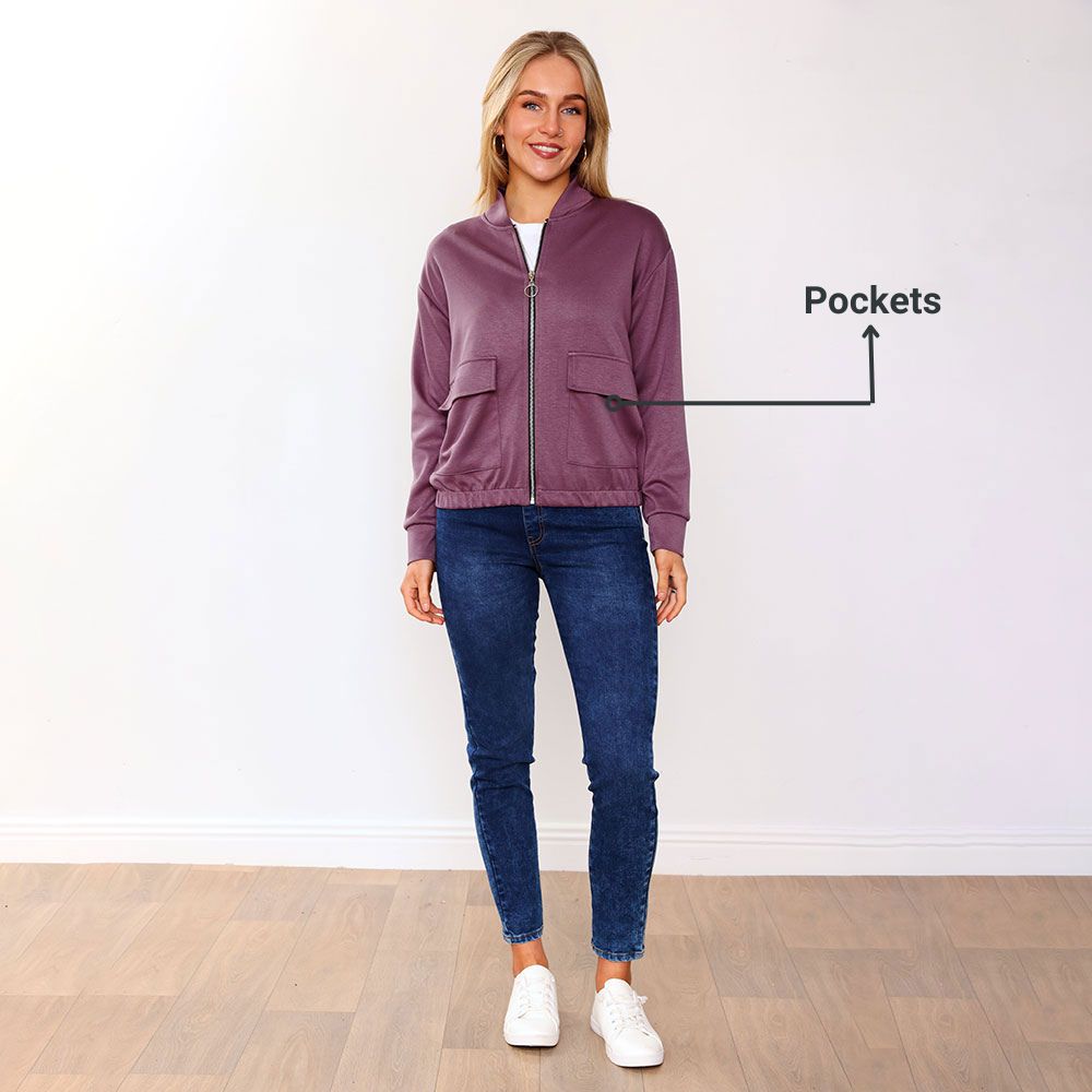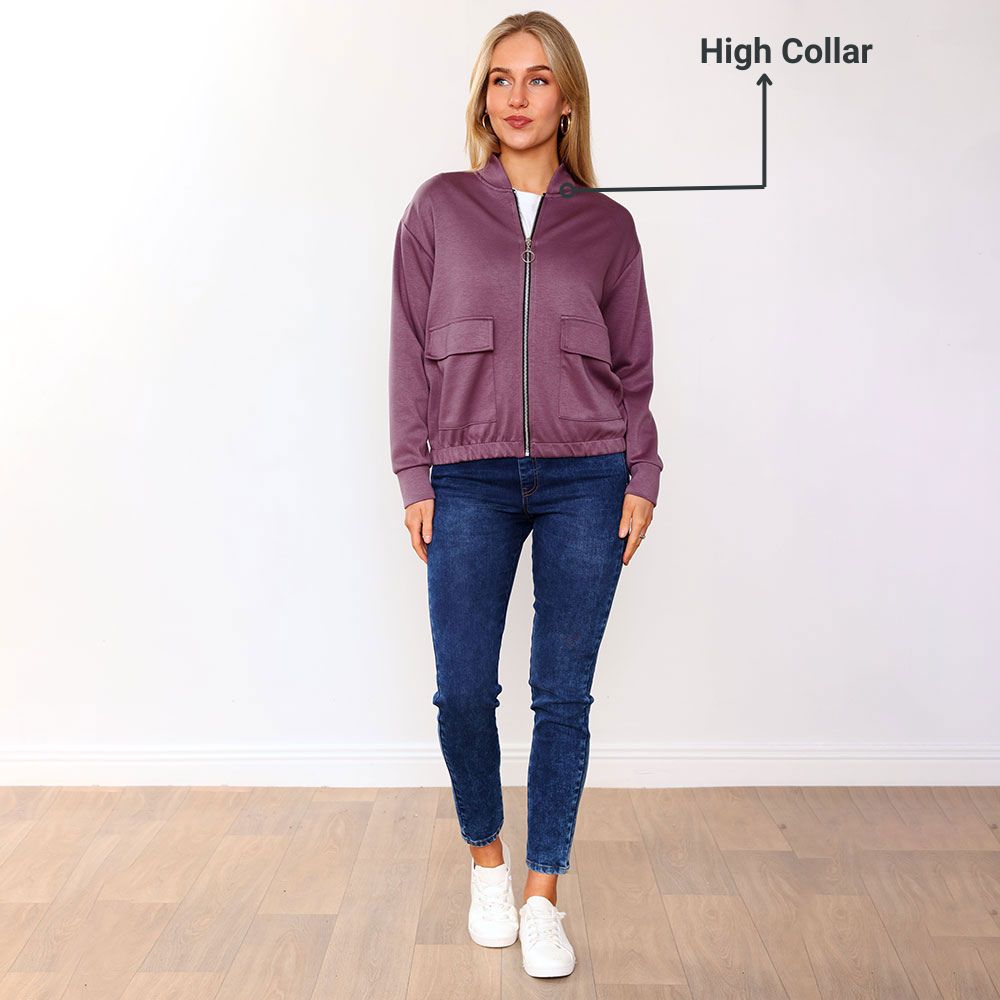 Stylish, comfy, and practical! The Flynn Bomber Jacket keeps you warm with its high-neck, zip-up design, and handy pockets—your go-to layer!