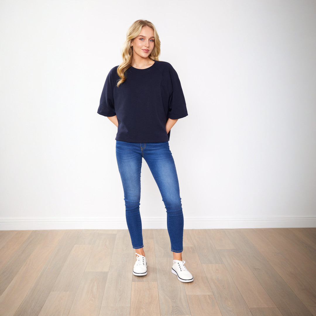The Leo Top in Navy is your new go-to for effortless style! Featuring a crew neckline, dropped shoulders, half-length sleeves, and a high-low hem, it’s all about that relaxed fit and laid-back vibe. Perfect for dressing up or down — you’ll be reaching for this one on repeat!