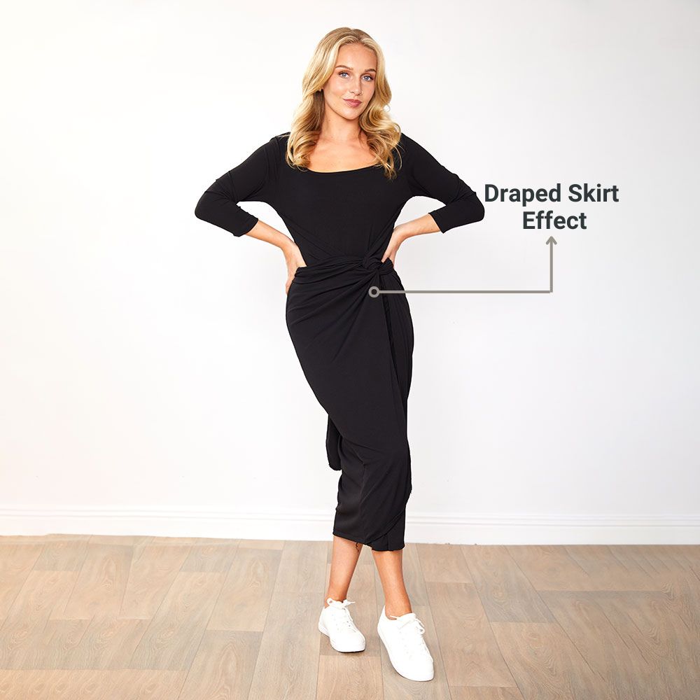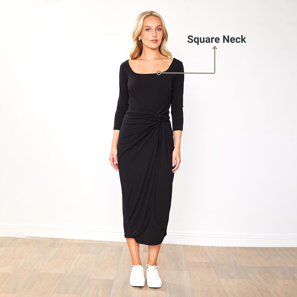 The Lottie Dress is effortlessly flattering with a modern edge. It features a chic square neckline and 3/4 length sleeves for a sleek silhouette. The self-tie wrap detail cinches the waist perfectly, while the draped skirt effect adds soft movement and elegance. With a body-skimming fit, it’s the kind of dress that hugs in all the right places — comfortable, confident, and ready for any occasion.