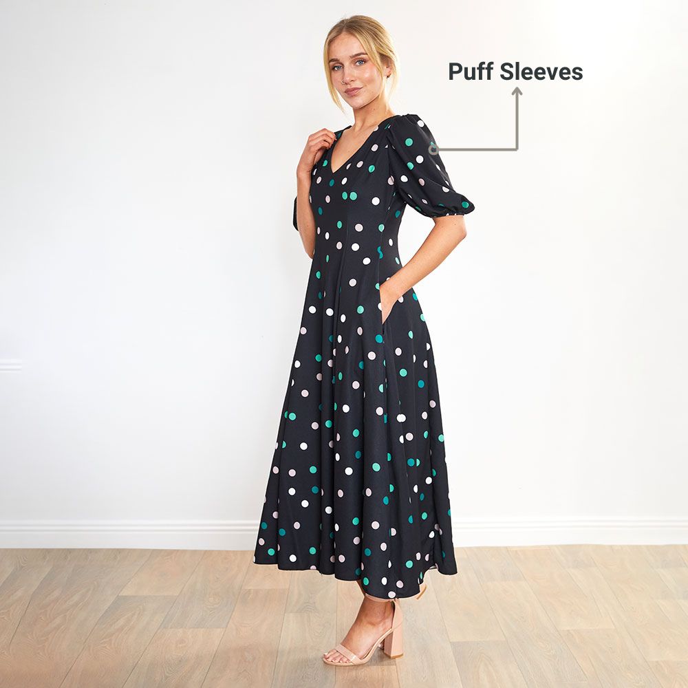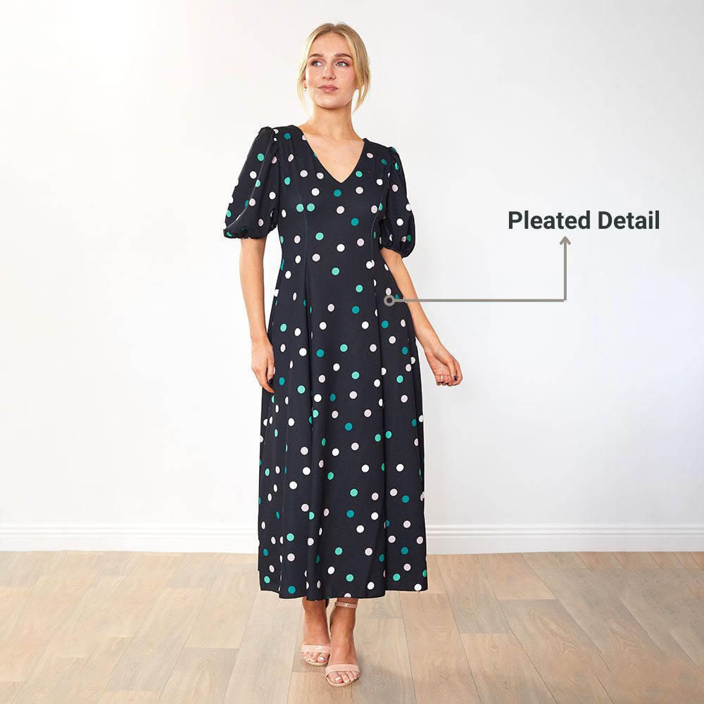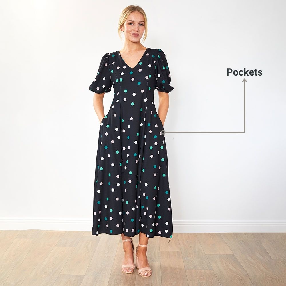 The Lucy Dress is pure charm with a playful twist. ✨ Its V-neckline frames the collarbone beautifully, while the puff sleeves add that touch of soft drama we can’t resist. The pleated detail gives the skirt graceful movement — it sways, twirls, and catches every glance. And yes, it has pockets, because who doesn’t love a little practicality with their polish? 💃 The Lucy Dress is made to flatter, flirt, and make you feel absolutely unforgettable.