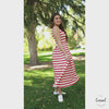 "This is gorgeous! The delicate pleating, the stripes, we have pockets. I just feel really comfortable in this and it flows just nice!"