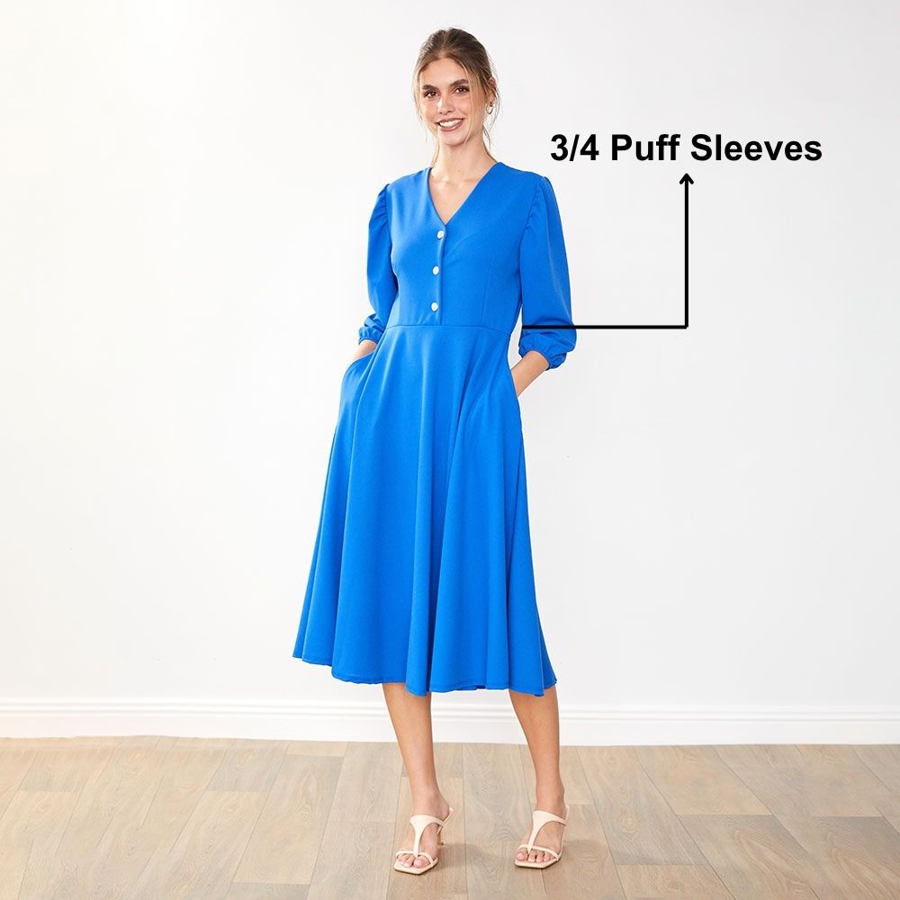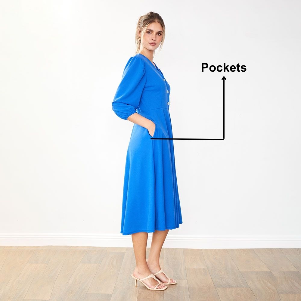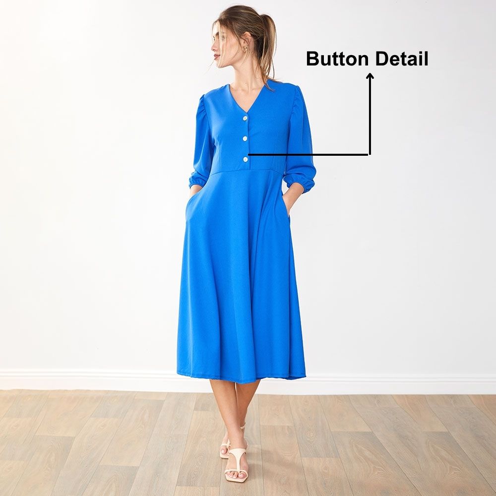 "Absolutely gorgeous dress – the fit is so flattering and I love the button detail."