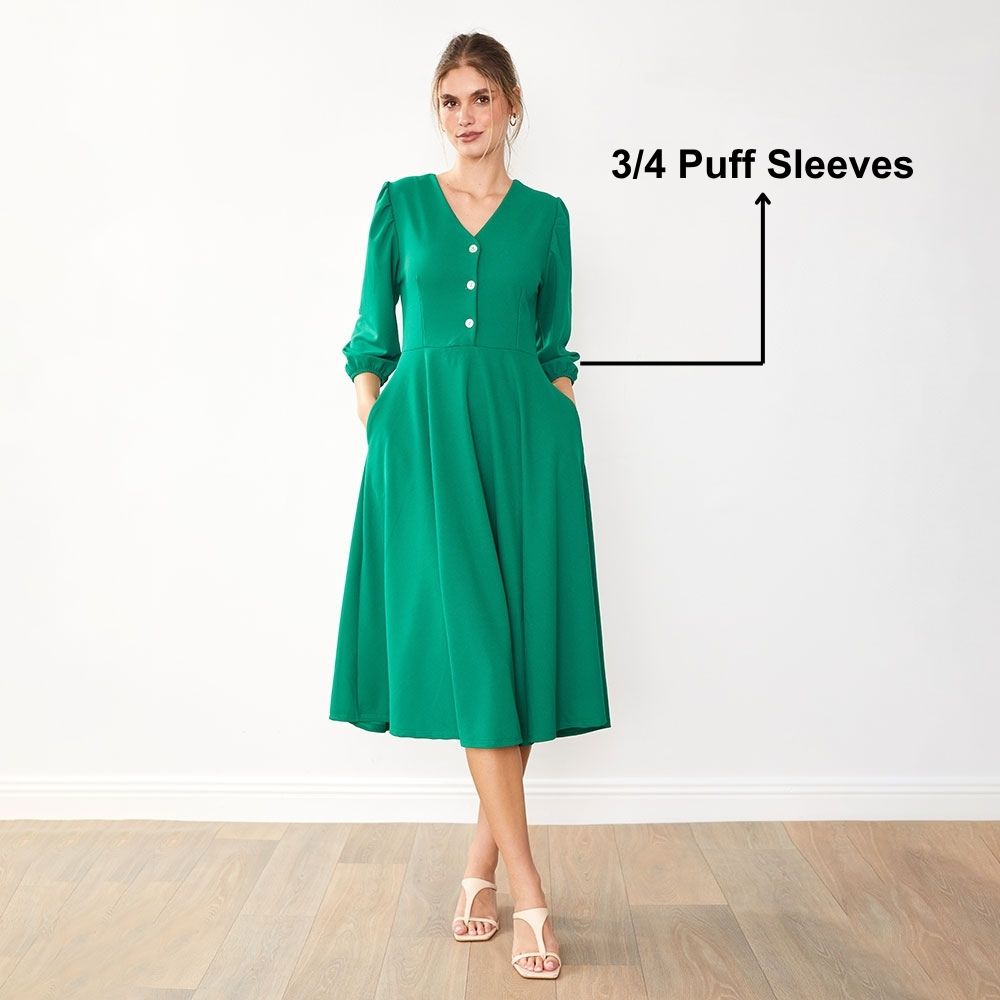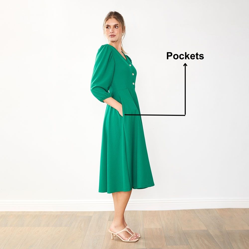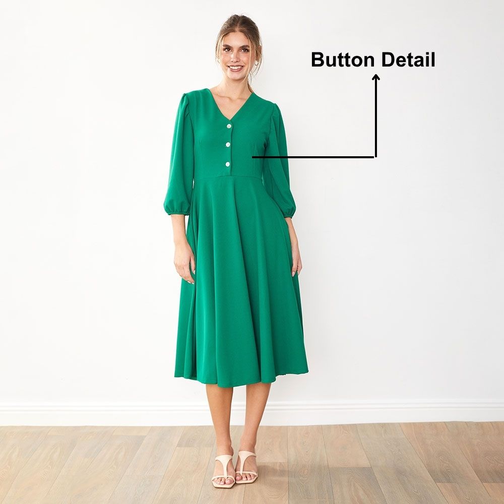 "Absolutely gorgeous dress – the fit is so flattering and I love the button detail."