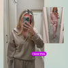 Featuring a V-neckline with hood, relaxed fit, and practical pockets, it’s loungewear made luxe.