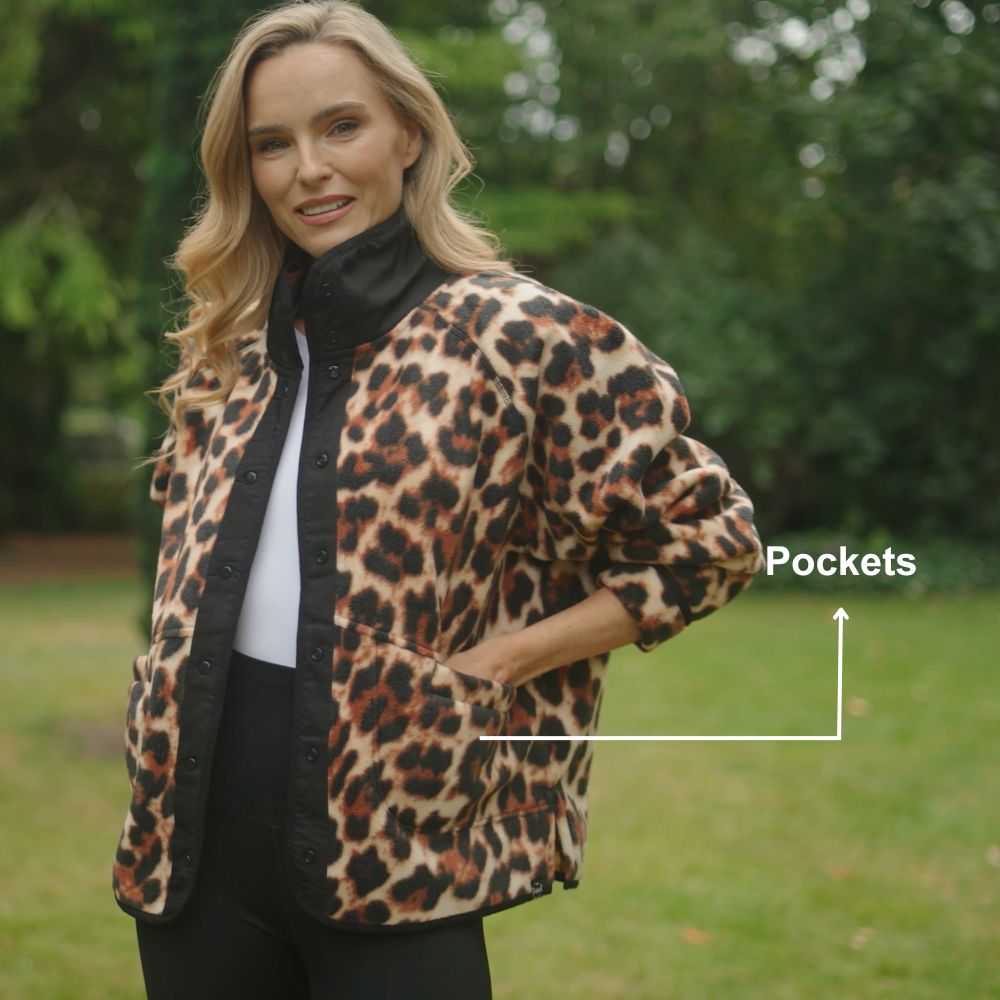 Molly Fleece Jacket (Leopard Print/Black Trim)