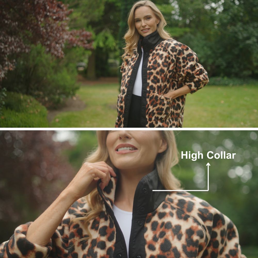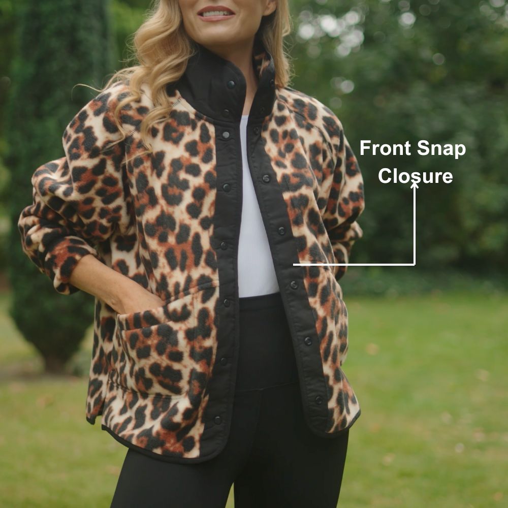 Molly Fleece Jacket (Leopard Print/Black Trim)