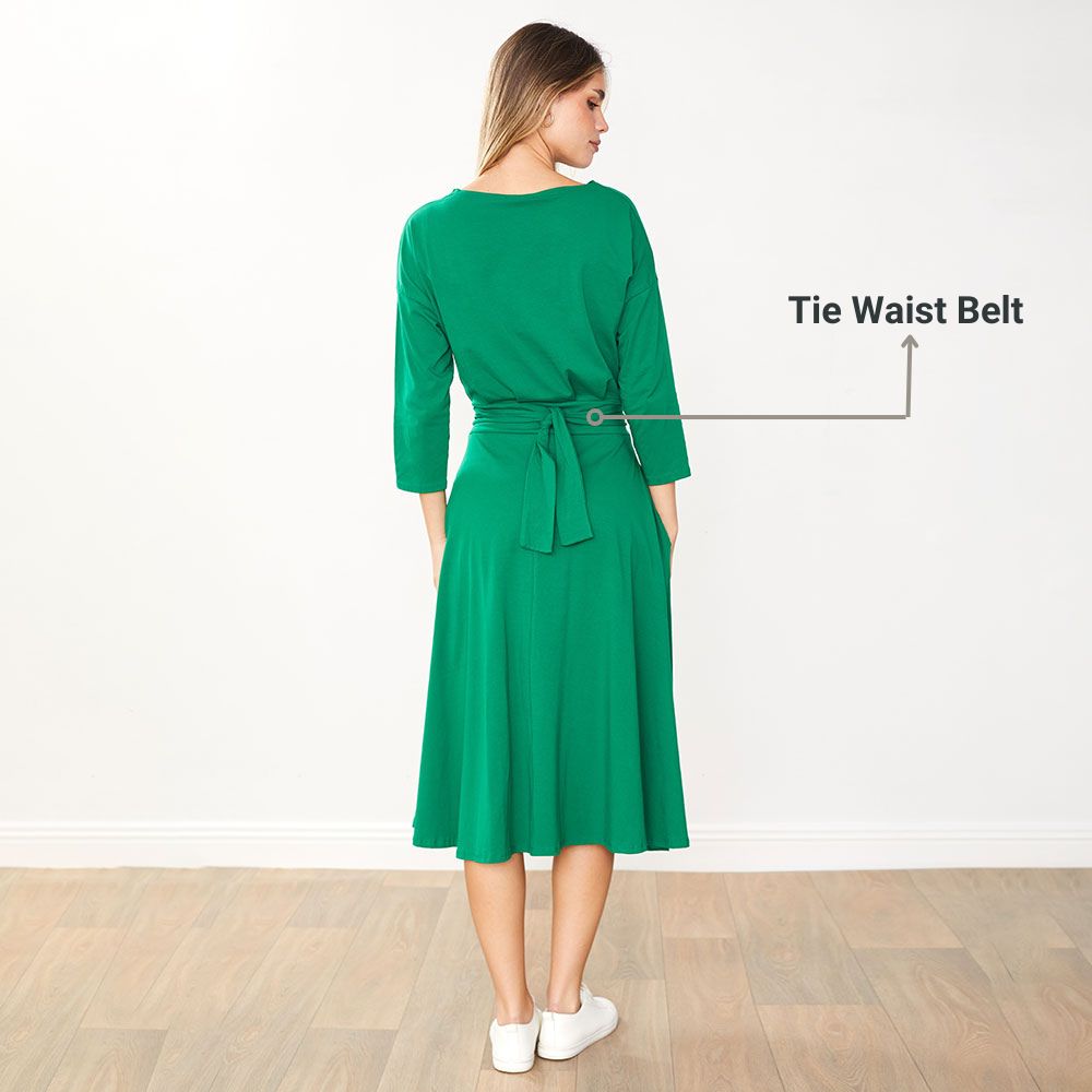 Effortless charm, all tied up. With its boat neckline, flattering 3/4 sleeves, and a tie-waist belt that defines your shape, the Nessa Dress is your go-to for chic comfort. Add a relaxed fit bodice and those all-important pockets, and you’ve got everyday elegance made easy.