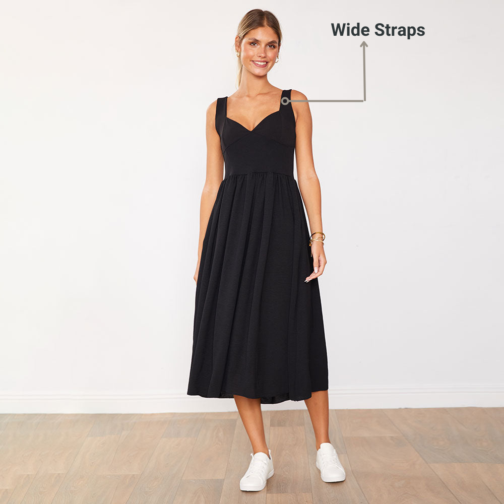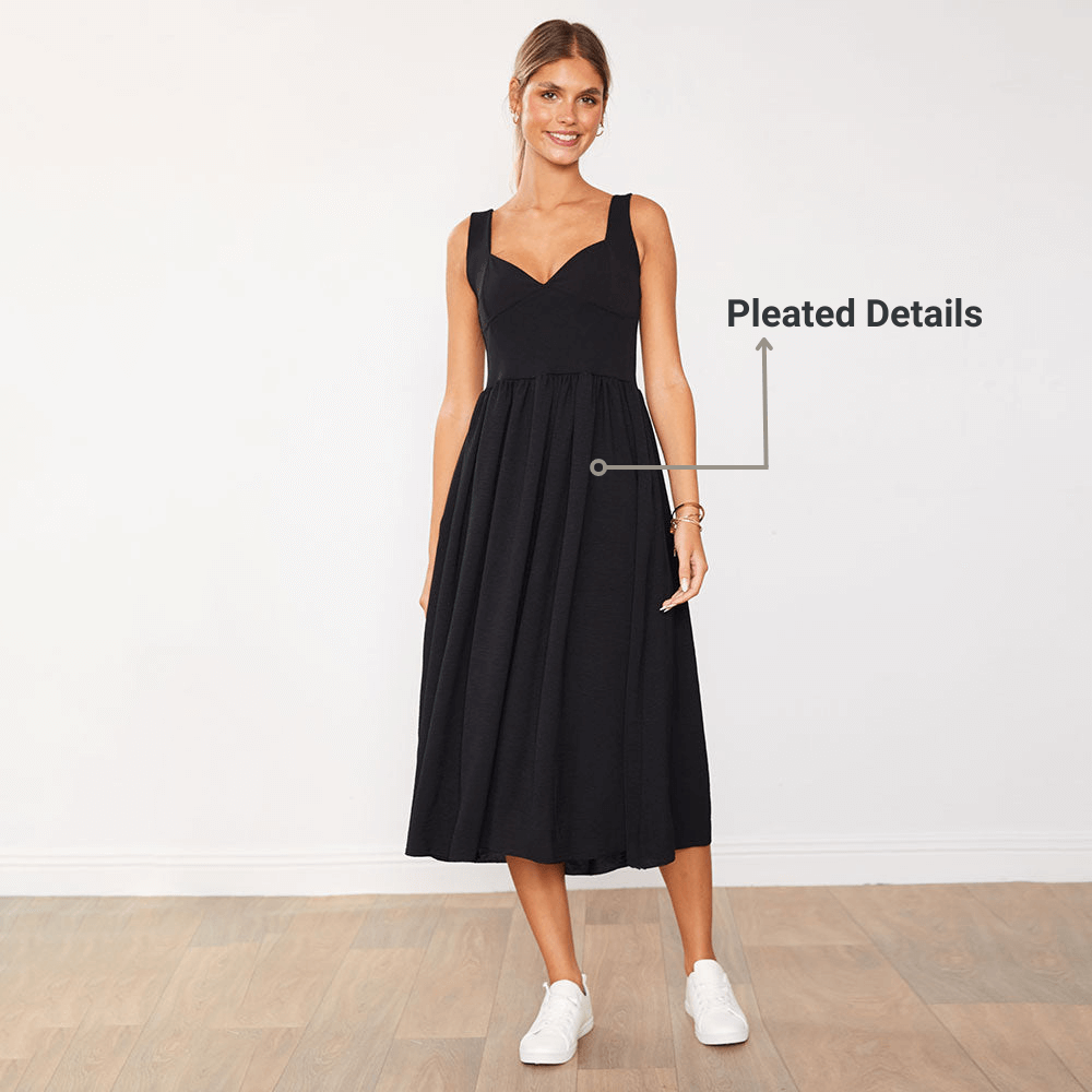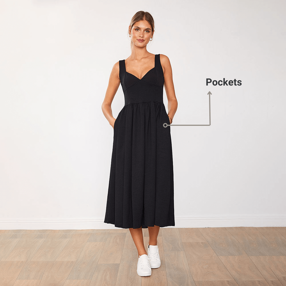 The Penny Dress in Black offers a perfect blend of elegance and comfort, ensuring you look effortlessly chic for any occasion.