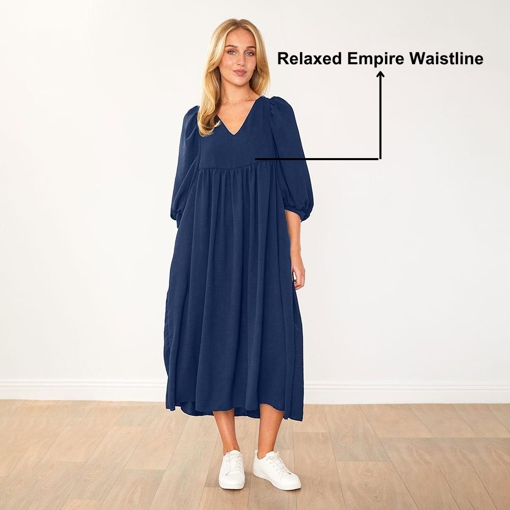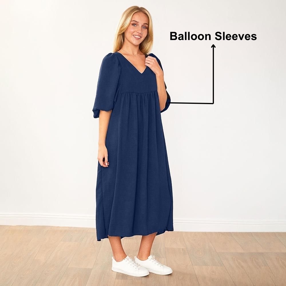The Porcha Dress is your go-to for effortless chic – with its flattering V-neckline, floaty balloon sleeves, and a breezy silhouette that moves with you, it’s style made simple.