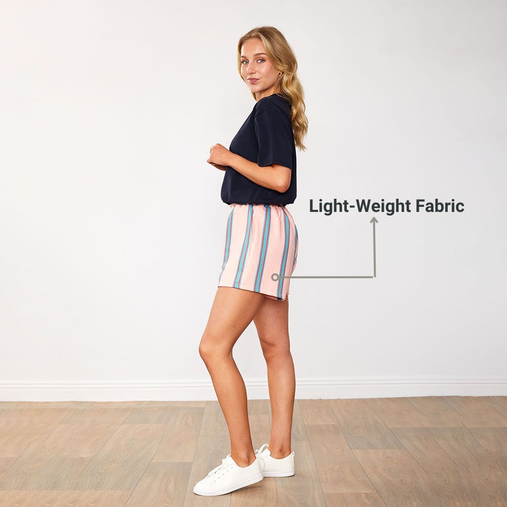 Good vibes only with these sunshine-ready shorts. Featuring playful stripe details, a comfy elasticated waistband, and breezy lightweight fabric, the Roma Shorts are made for easy days and effortless style — and yes, they come with pockets! ☀️