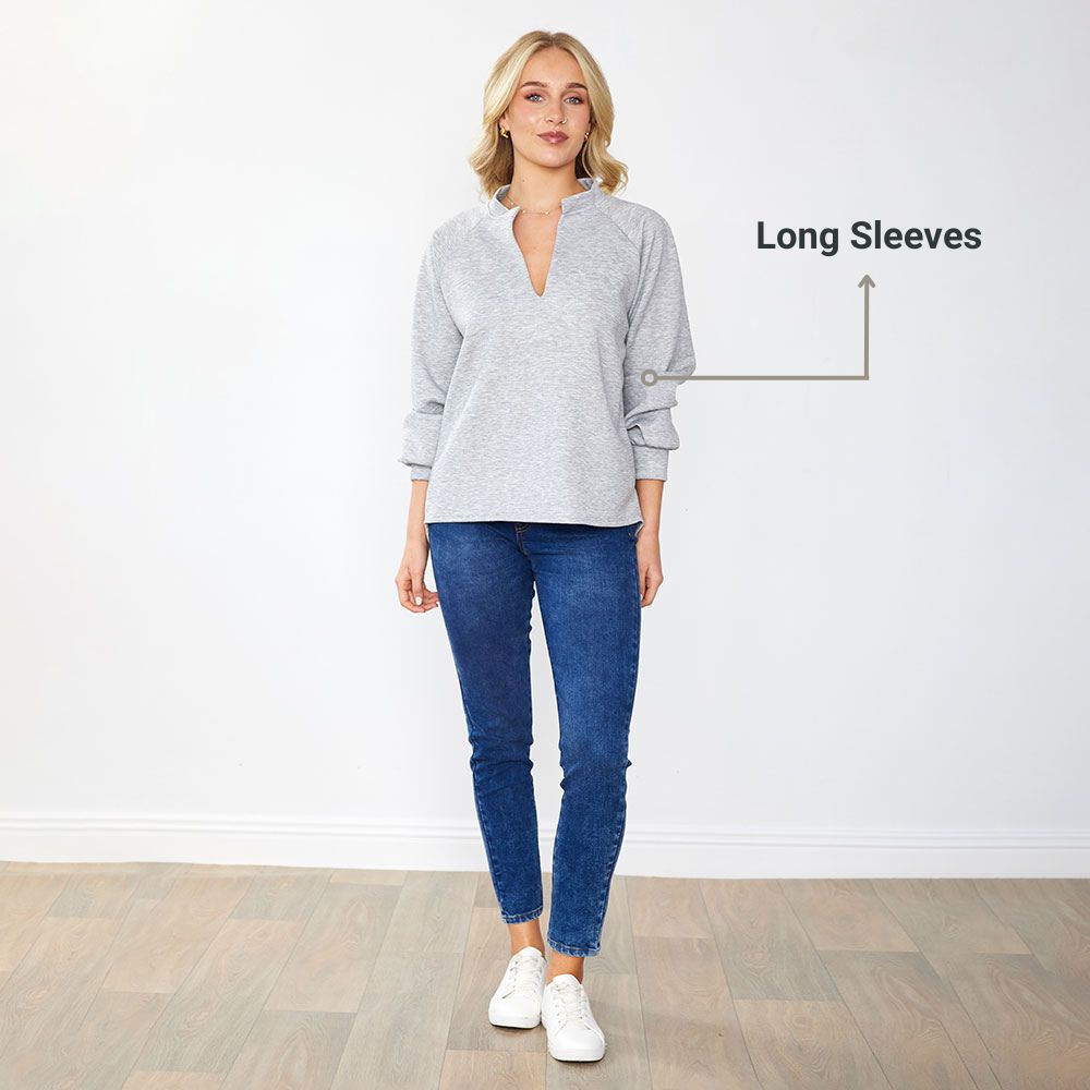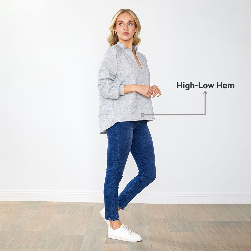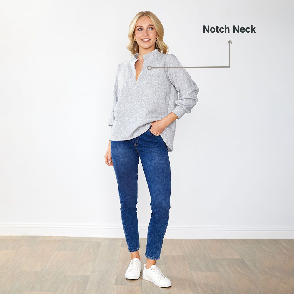 “The Saige Jumper is so comfy and flattering—I love the notch neck detail, it makes it feel effortlessly stylish!”