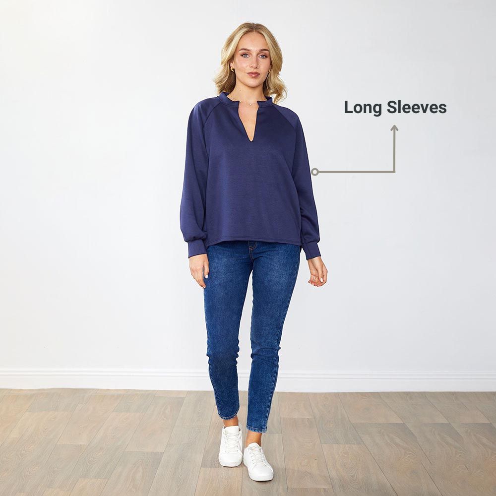 “The Saige Jumper is so comfy and flattering—I love the notch neck detail, it makes it feel effortlessly stylish!”