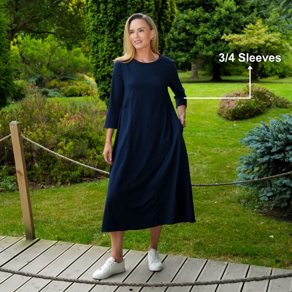 ✨ Steal the spotlight effortlessly — the Sally Dress is your all-day style hero! Classic crew neckline, elegant 3/4 sleeves, and figure-flattering side panels meet a breezy fit and hidden pockets for that just right mix of polish and comfort.