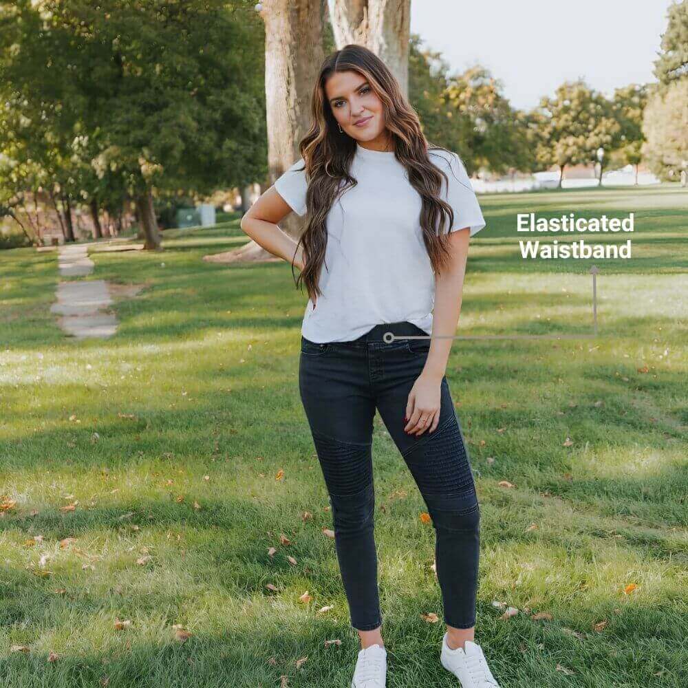 Feel confident and comfortable all day with the Tara Biker Jeans, offering a flattering fit, edgy style, and flexible movement.