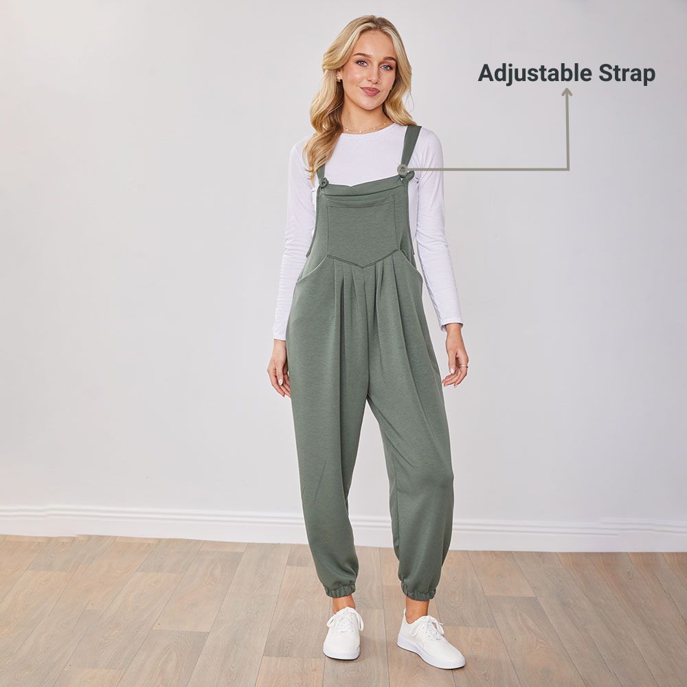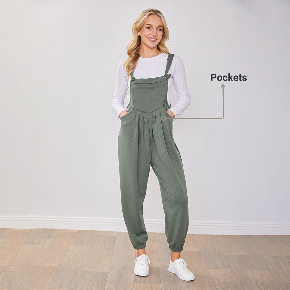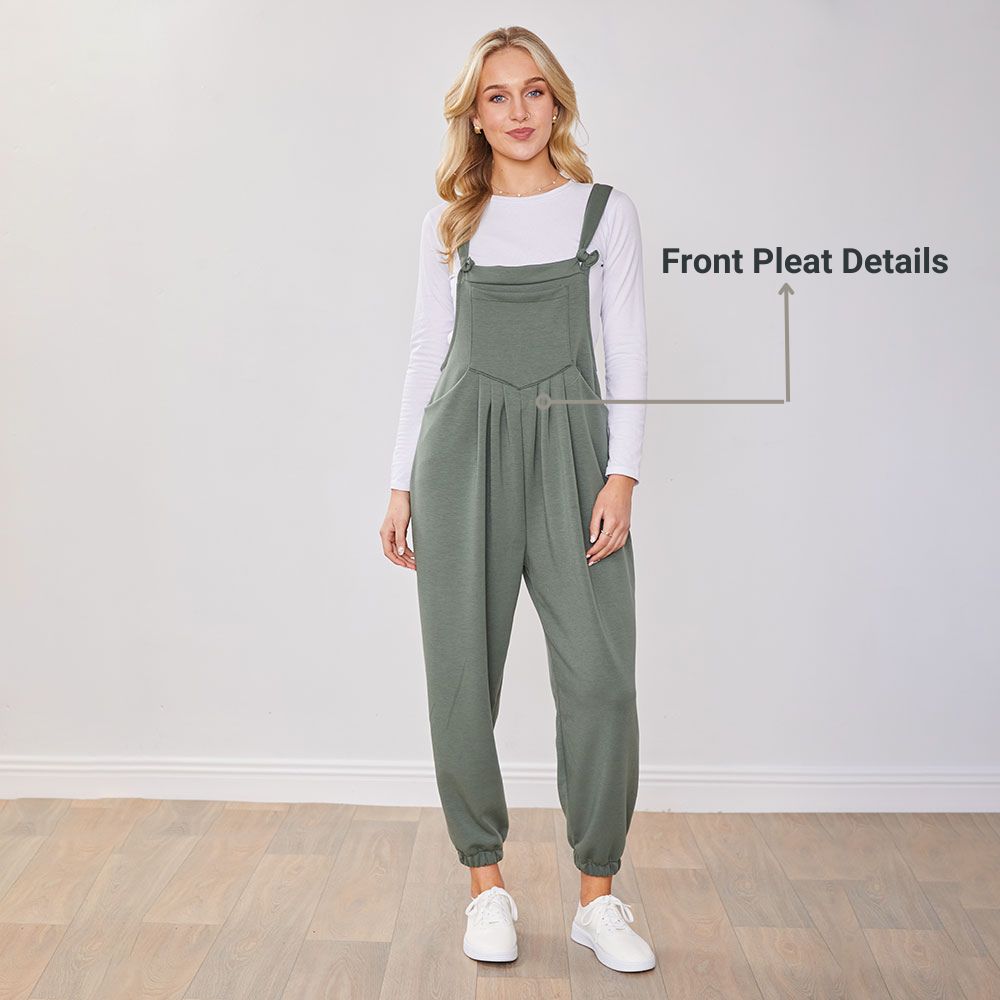 "The Tilly Dungaree is perfection—so comfy, stylish, and those pockets are everything! The front pleat detail adds a polished touch. I wear it everywhere!"