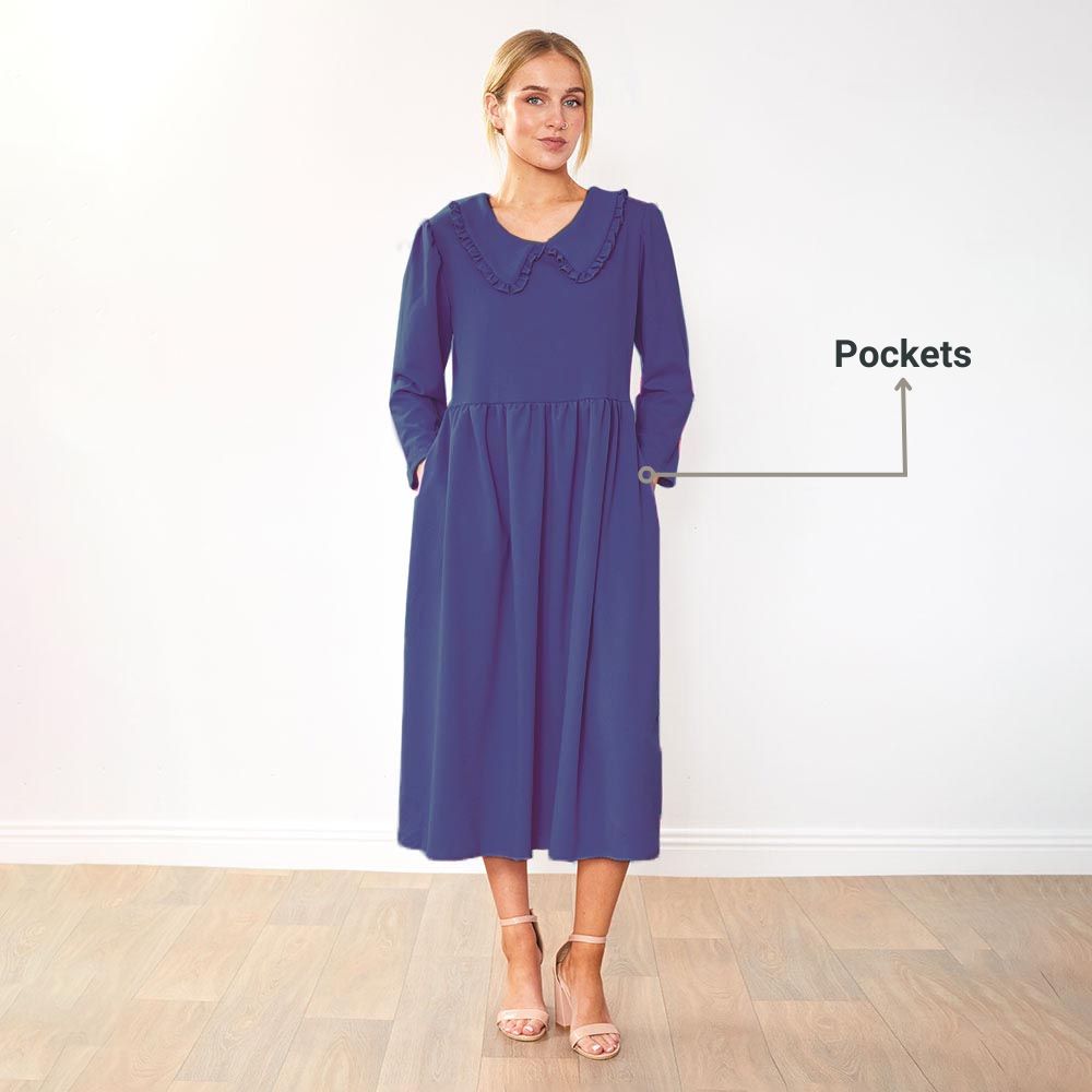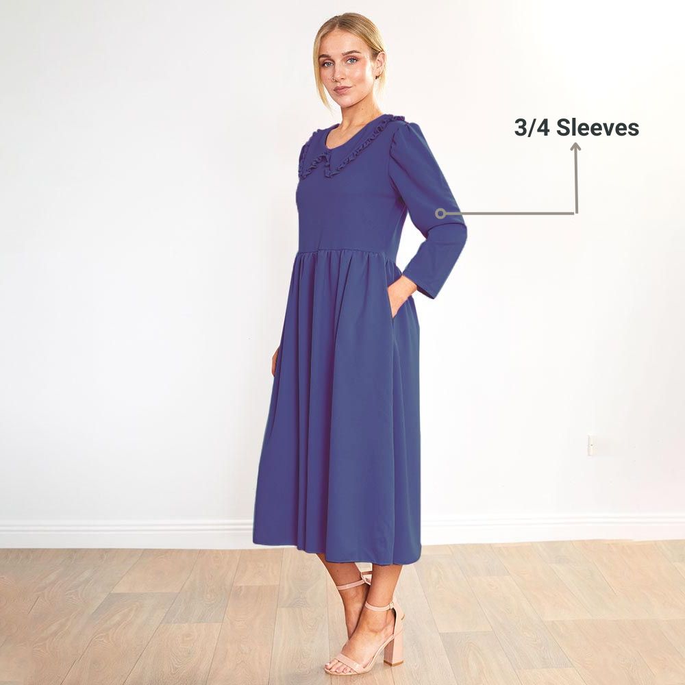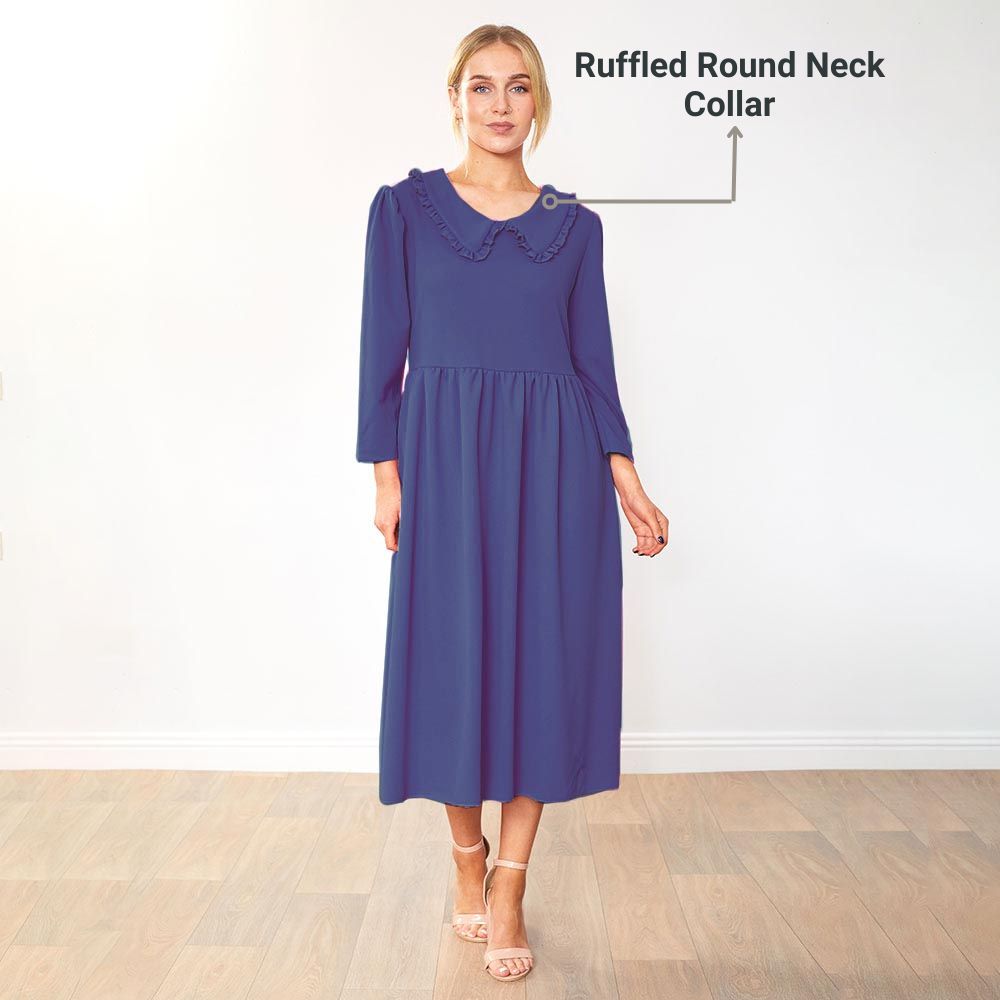 With its Ruffled Round Neck Collar, chic 3/4 Sleeves, and flattering Empire Waist Seam, this beauty was made to flatter in all the right places. And yes, it’s got Pockets — because style should always come with a touch of practicality. ✨