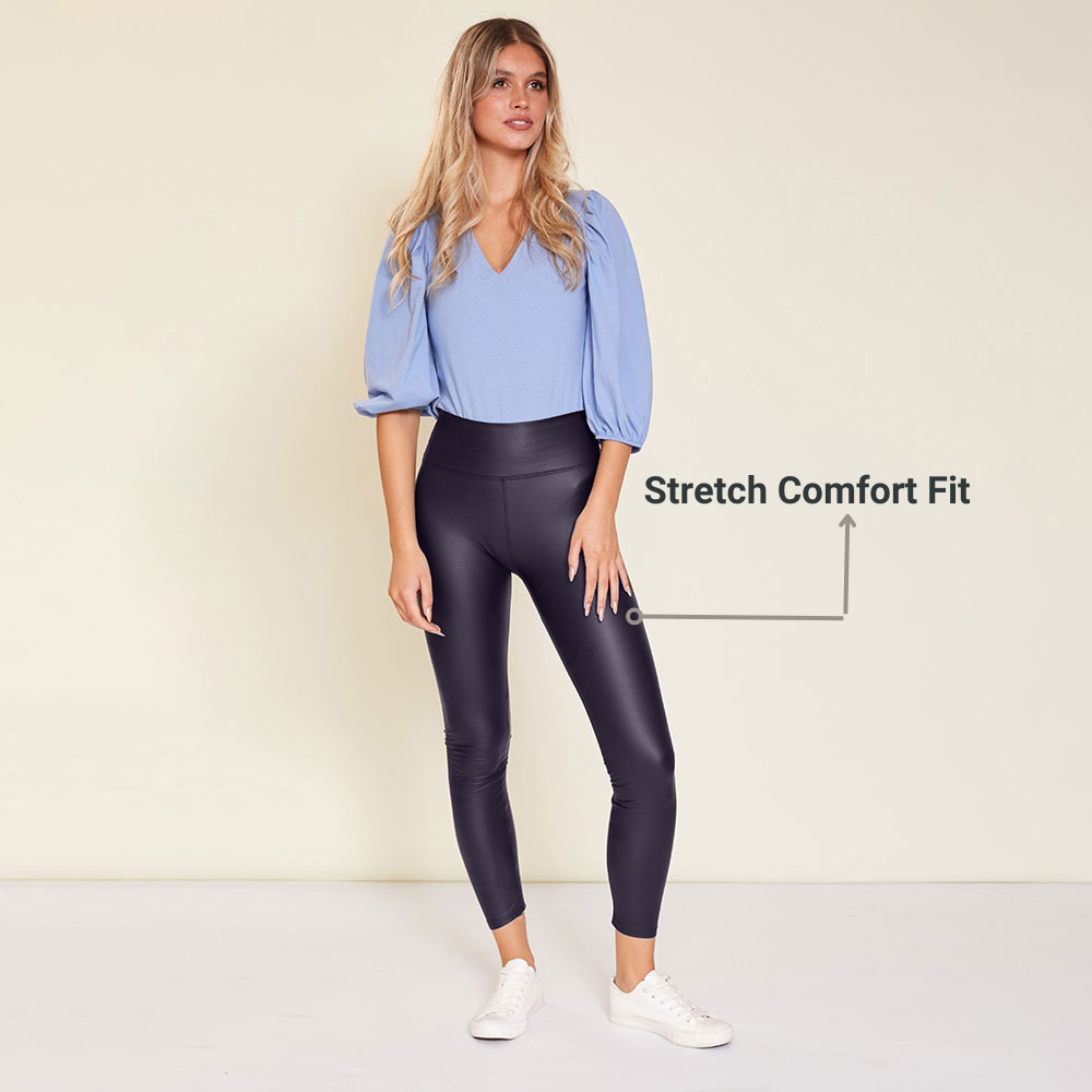 These High Waisted Wet Look PU Leggings are the hottest trend at the moment. They go perfect with High Boots, Ankle Boots, Trainers....you name it....these leggings will change your life! Easy to wear & oh so comfortable. They are fully lined so easy to get on and they just hug your legs all day long - you're going to love it.